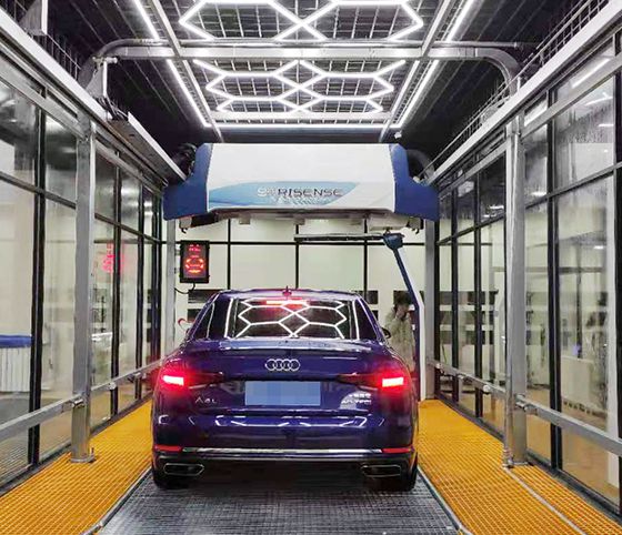 2019年日森自主研發生產的單擺臂洗車機,具備高壓清洗、水蠟鍍膜、拋光、風干等功能,是洗護一體的全自動智能無接觸洗車機。